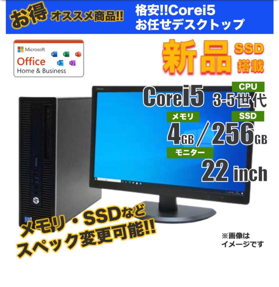 格安Corei5お任せデスクトップ/22inchモニター付き/Corei5 3〜5世代/Windows10